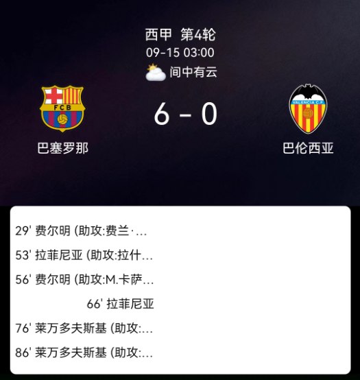 北京时间9月26日西班牙足球甲级联赛(西甲)第6轮,皇家奥维耶多主场对阵巴塞罗那(巴萨)。上半场巴萨因门将失误先失一球,下半场连入三球完成逆转,最终比分,皇家奥维耶多1-3巴塞罗那(巴萨)。关键事件第34分钟(…