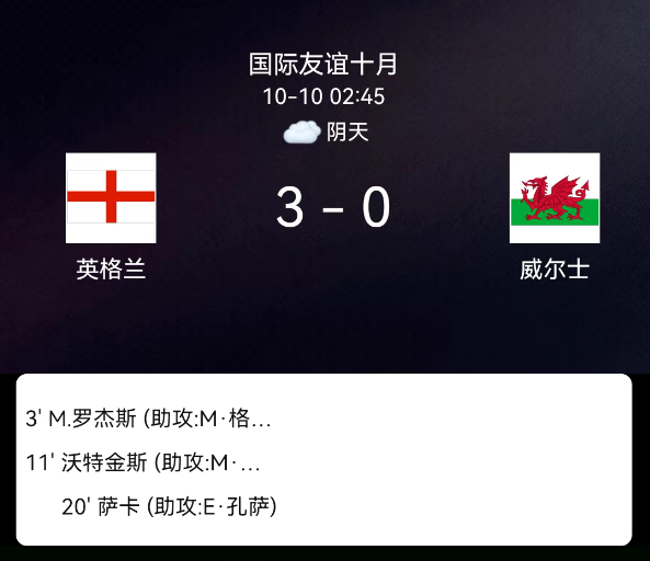 北京时间10月10日,国际友谊赛上演英伦德比,英格兰主场迎战威尔士。开场仅3分钟,英格兰便取得梦幻开局,格伊右路突破后送出横传,摩根-罗杰斯门前轻松推射破门,将比分改写为1-0。第11分钟,格伊再度贡献助攻,他精…