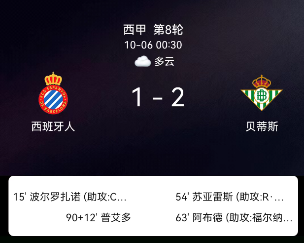 北京时间10月6日,西班牙足球甲级联赛第8轮,西班牙人主场迎战皇家贝蒂斯。第15分钟波尔-洛萨诺轰出世界波助西班牙人领先,第27分钟西班牙人先吃黄牌;第33分钟贝蒂斯福尔纳尔斯染黄,半场补时阶段普阿多、安东尼因冲…