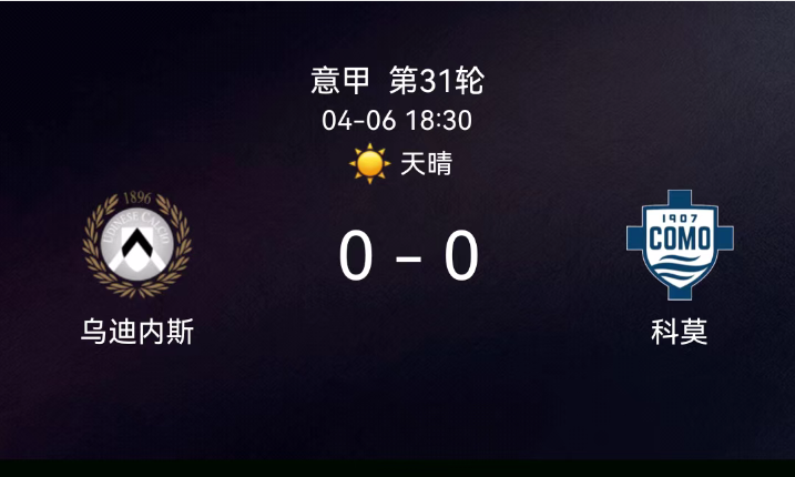北京时间4月6日,意大利足球顶级联赛第31轮,乌迪内斯主场迎战科莫。上半场双方立足防守,中场拼抢十分激烈,进攻端均未能形成有效射门,场面略显沉闷,半场互交白卷。下半场乌迪内斯加强前场进攻组织,多次通过边路…